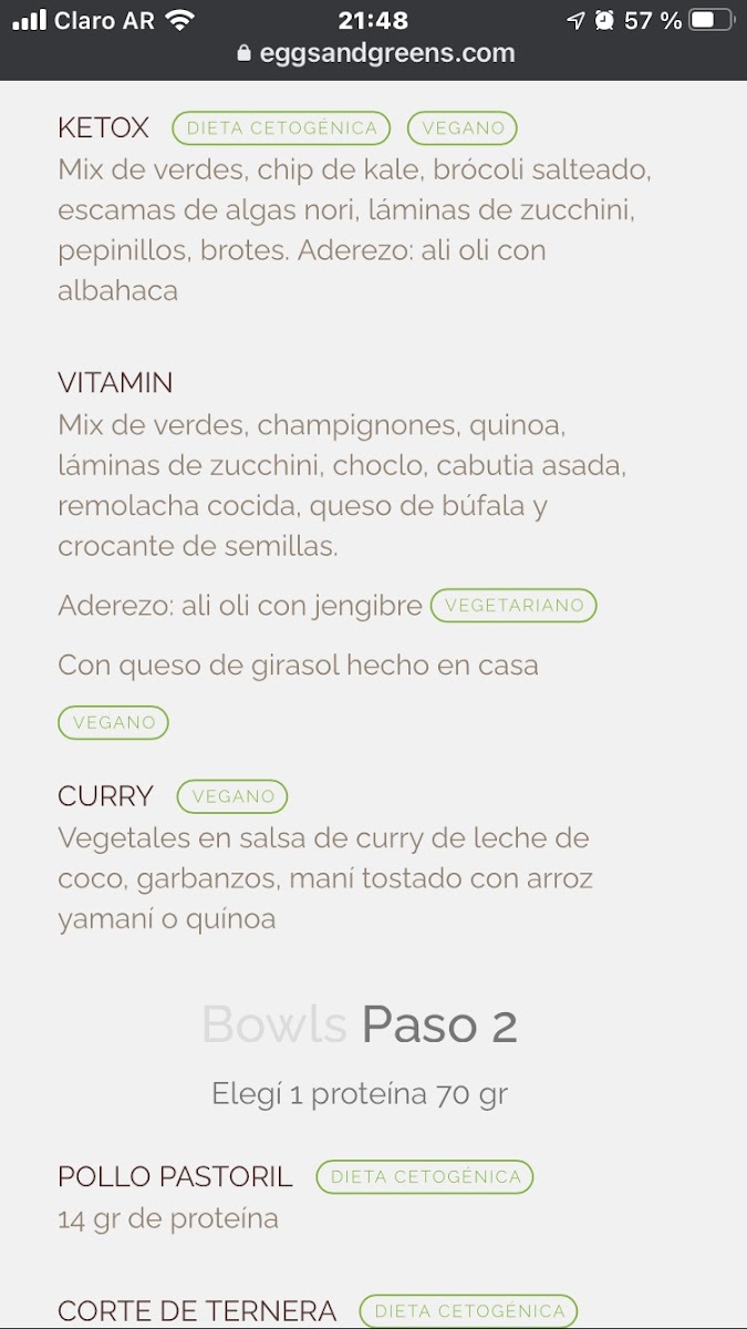 Vegetales en salsa de curry de leche de coco garbanzos, maní tostado con arroz yamaní o quínoa. /va.